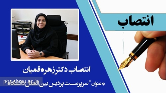 جناب آقای دکتر سید علیرضا مرتضوی سرپرست محترم معاونت بین الملل دانشگاه، طی ابلاغی سرکار خانم دکتر زهره قمیان را به عنوان "سرپرست پردیس بین الملل دانشگاه" منصوب کردند.