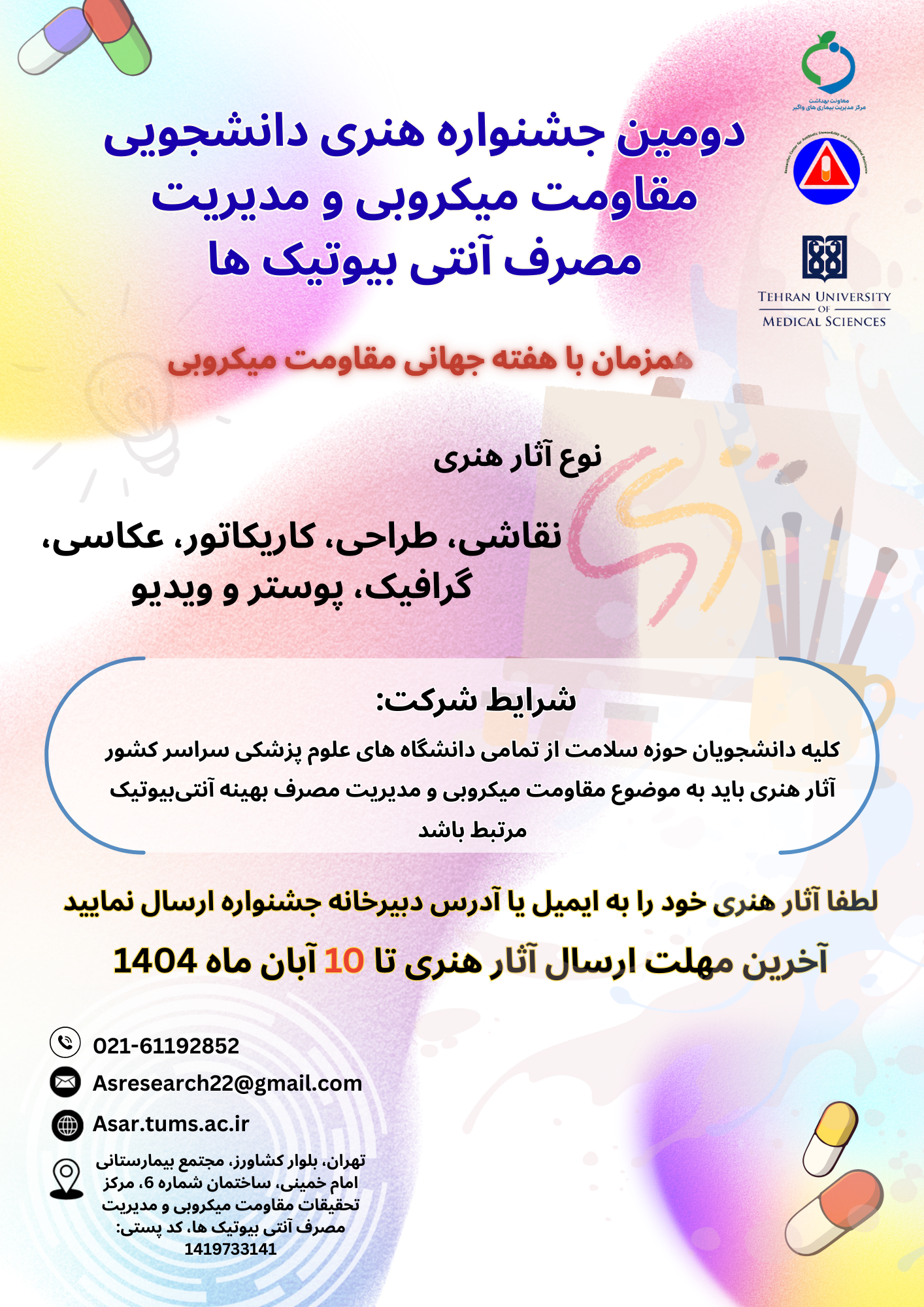 دومین جشنواره هنری دانشجویی مقاومت میکروبی و مدیریت مصرف آنتی بیوتیک ها