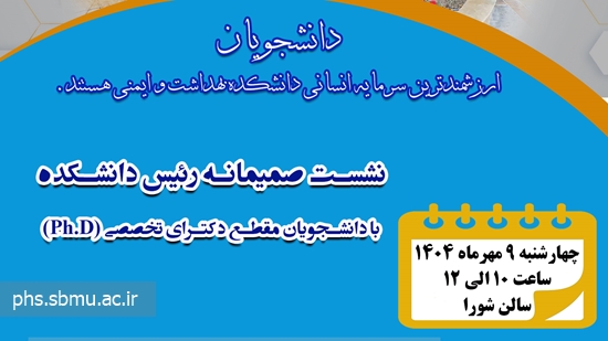نشست صمیمانه رئیس دانشکده با دانشجویان مقطع دکترای تخصصی گروه خبری : اخبار کد خبر : 161154 لینک کوتاه کلید واژه