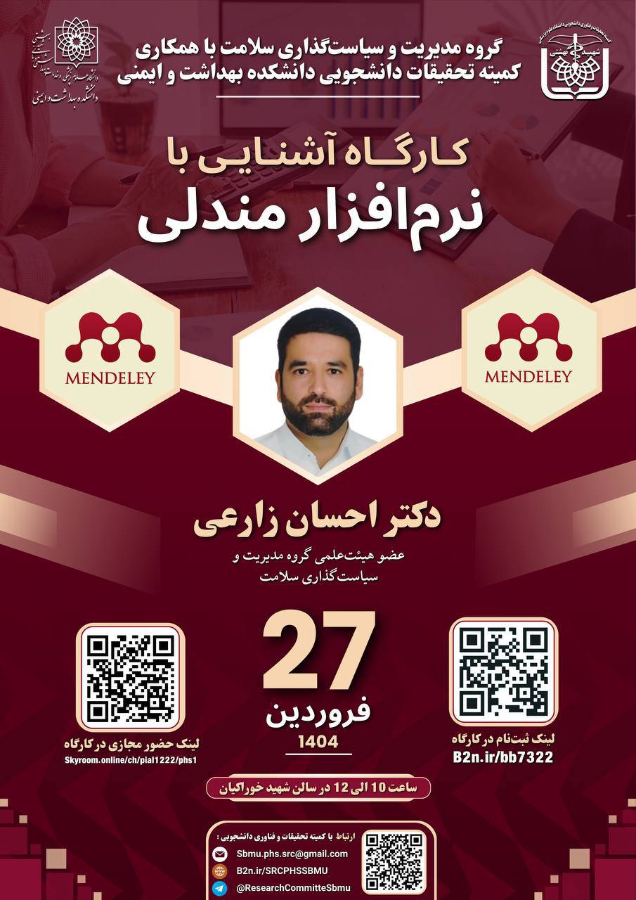 گروه مدیریت و سیاست گذاری سلامت با همکاری کمیته تحقیقات و فناوری دانشجویی دانشکده بهداشت و ایمنی دانشگاه علوم پزشکی شهیدبهشتی
