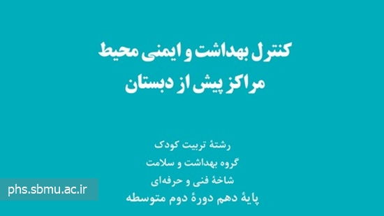کتاب کنترل بهداشت و ایمنی محیط مراکز پیش از دبستان ویژه رشته تربیت کودک گروه بهداشت و سلامت شاخه فنی و حرفه ای پایه دهم دوره دوم متوسطه، توسط شرکت چاپ و نشر کتاب های درسی ایران منتشر شد.