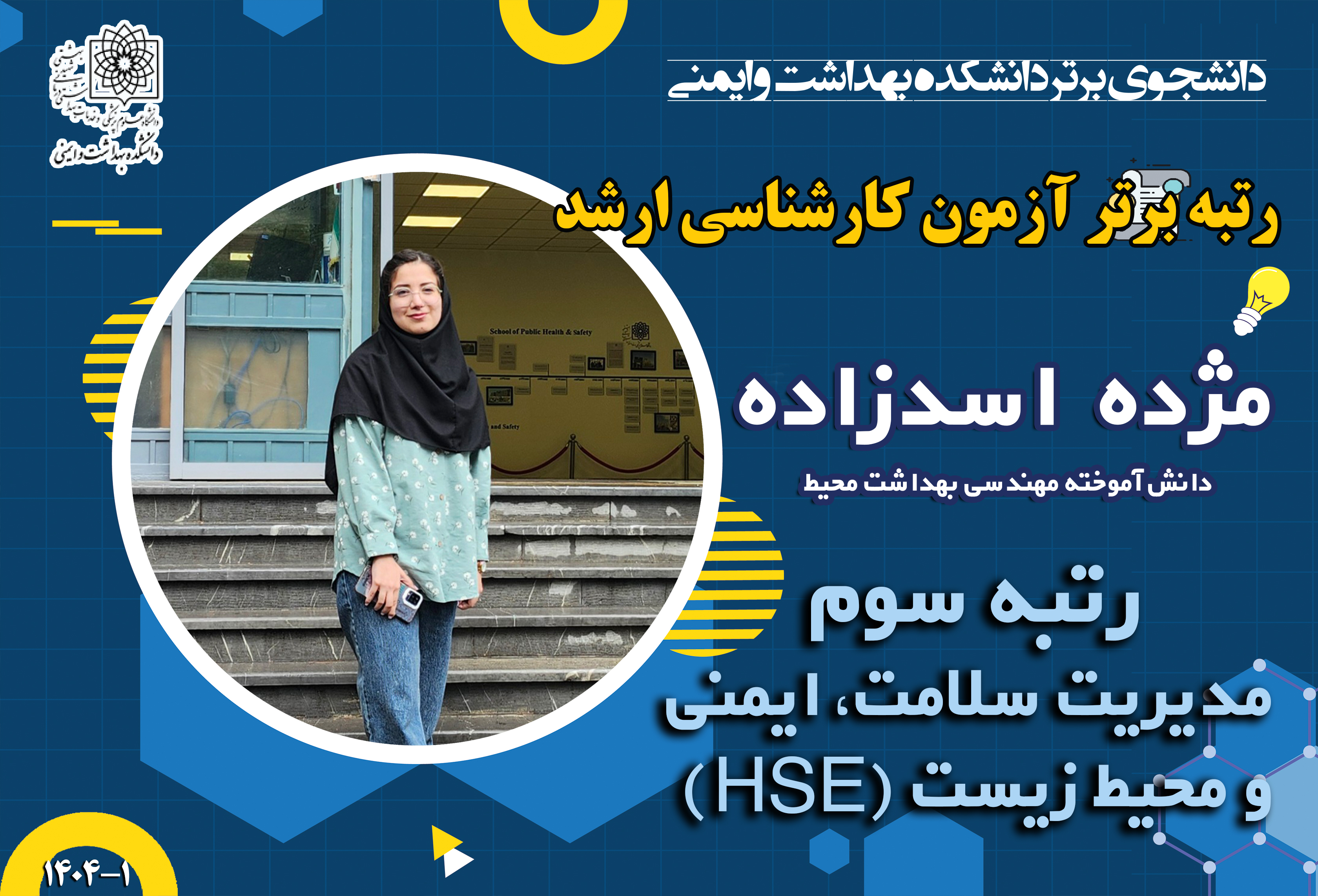 مژده اسدزاده رتبه سوم آزمون کارشناسی ارشد مدیریت HSE گروه خبری : اخبار,افتخارات آموزشی کد خبر : 159002 لینک کوتاه کلید واژه