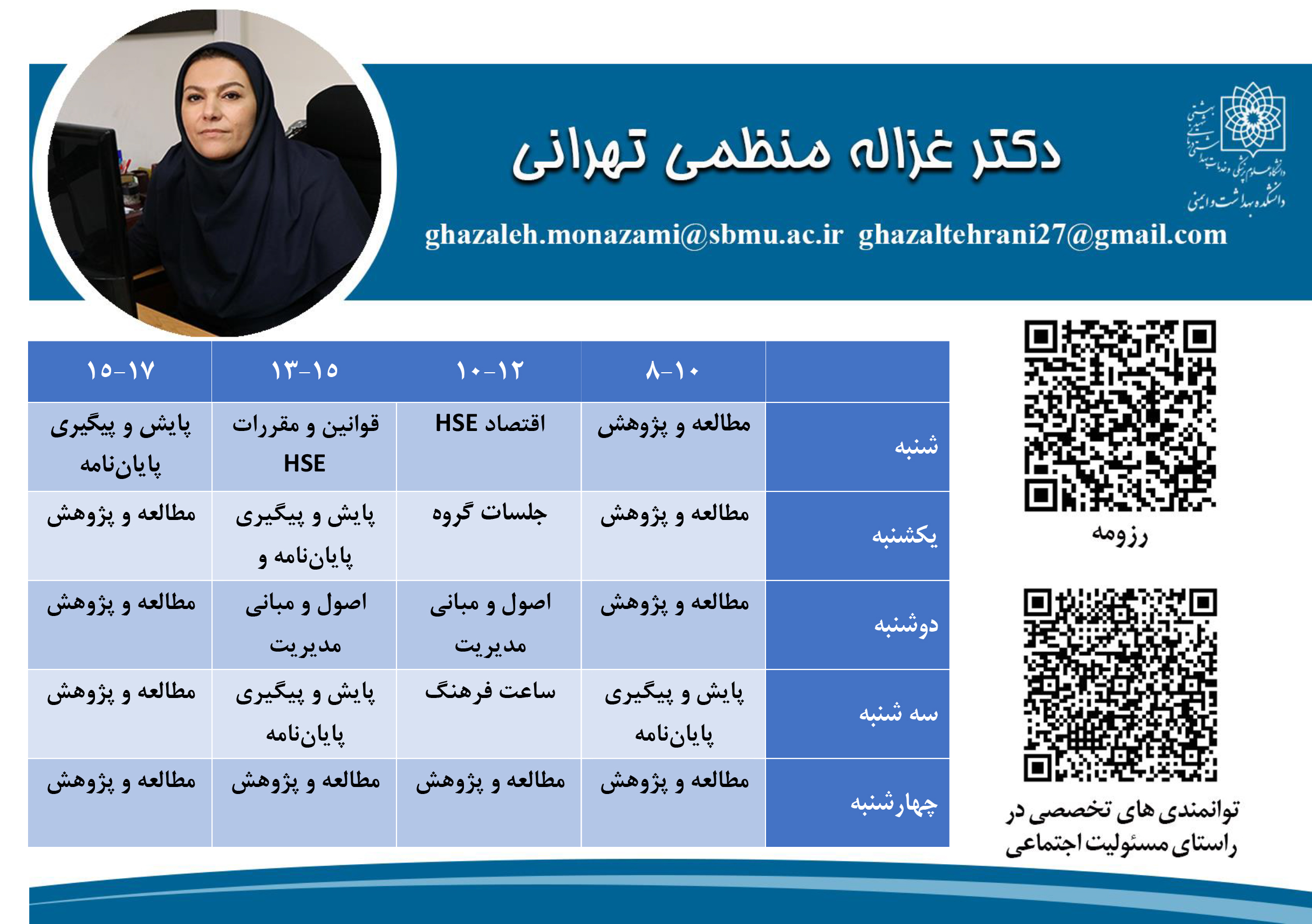 برنامه هفتگی نیمسال اول سال تحصیلی ۱۴۰۳-۱۴۰۲