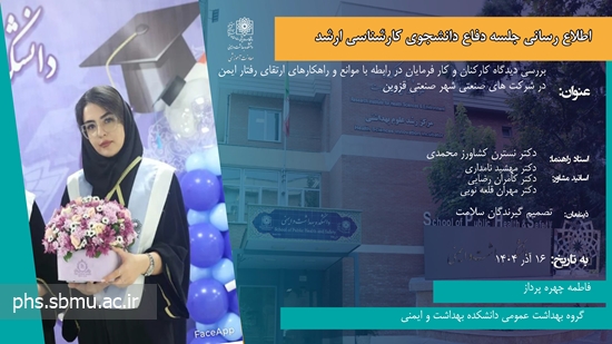 دفاع دانشجو فاطمه چهره پرداز- گروه بهداشت عمومی