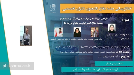 دفاع دانشجو مهدی صادقی- گروه سلامت در بلایا و فوریت ها گروه خبری : دفاع ها و ژورنال کلاب ها کد خبر : 162617 لینک کوتاه کلید واژه