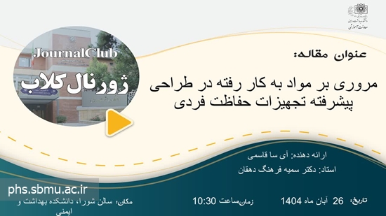 ژورنال کلاب آی سا قاسمی- گروه مهندسی بهداشت حرفه ای و ایمنی کار گروه خبری : دفاع ها و ژورنال کلاب ها کد خبر : 163964 لینک کوتاه کلید واژه