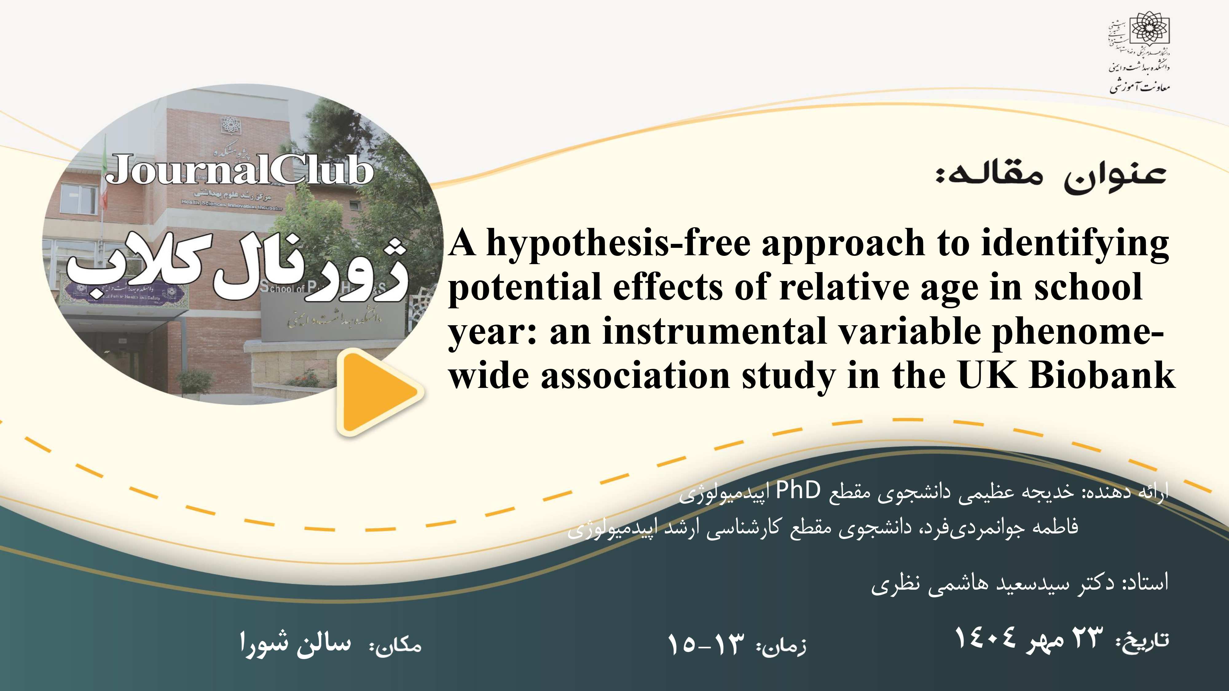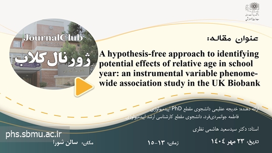 ژورنال کلاب دانشجو خدیجه عظیمی- گروه اپیدمیولوژی گروه خبری : دفاع ها و ژورنال کلاب ها کد خبر : 161694 لینک کوتاه کلید واژه