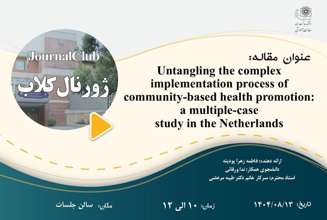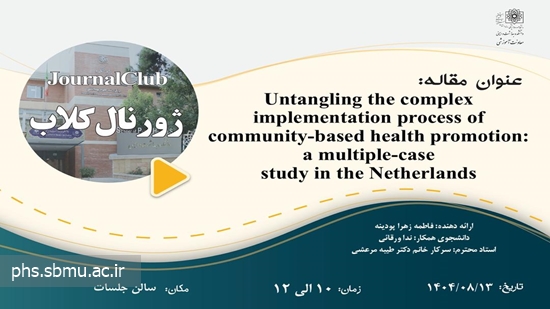 ژورنال کلاب دانشجو زهرا پودینه و ندا ورقائی- گروه بهداشت عمومی گروه خبری : دفاع ها و ژورنال کلاب ها کد خبر : 163025 لینک کوتاه کلید واژه