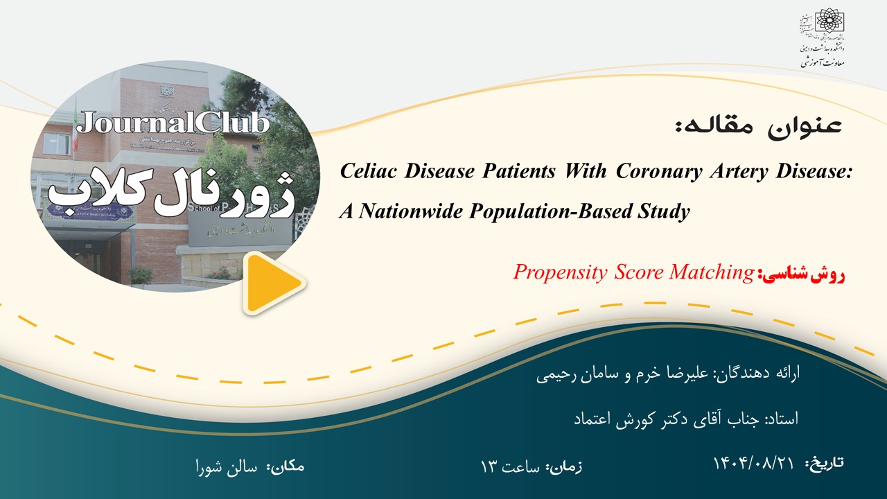 ژورنال کلاب دانشجو علیرضا خرم و سامان رحیمی- گروه اپیدمیولوژی گروه خبری : دفاع ها و ژورنال کلاب ها کد خبر : 163365 لینک کوتاه کلید واژه