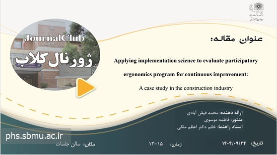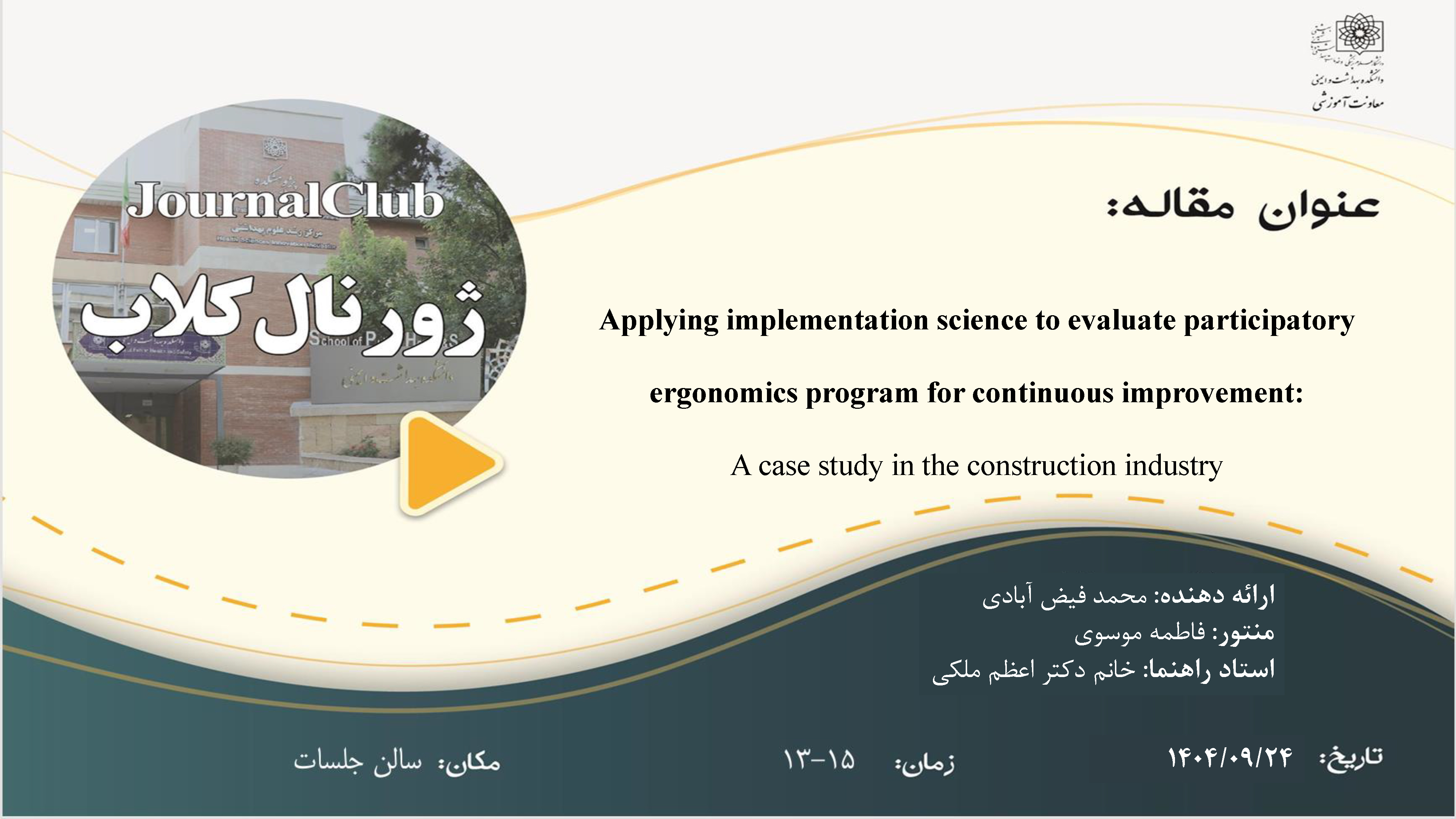 ژورنال کلاب دانشجو محمد فیض آبادی- گروه ارگونومی گروه خبری : دفاع ها و ژورنال کلاب ها کد خبر : 164930 لینک کوتاه کلید واژه