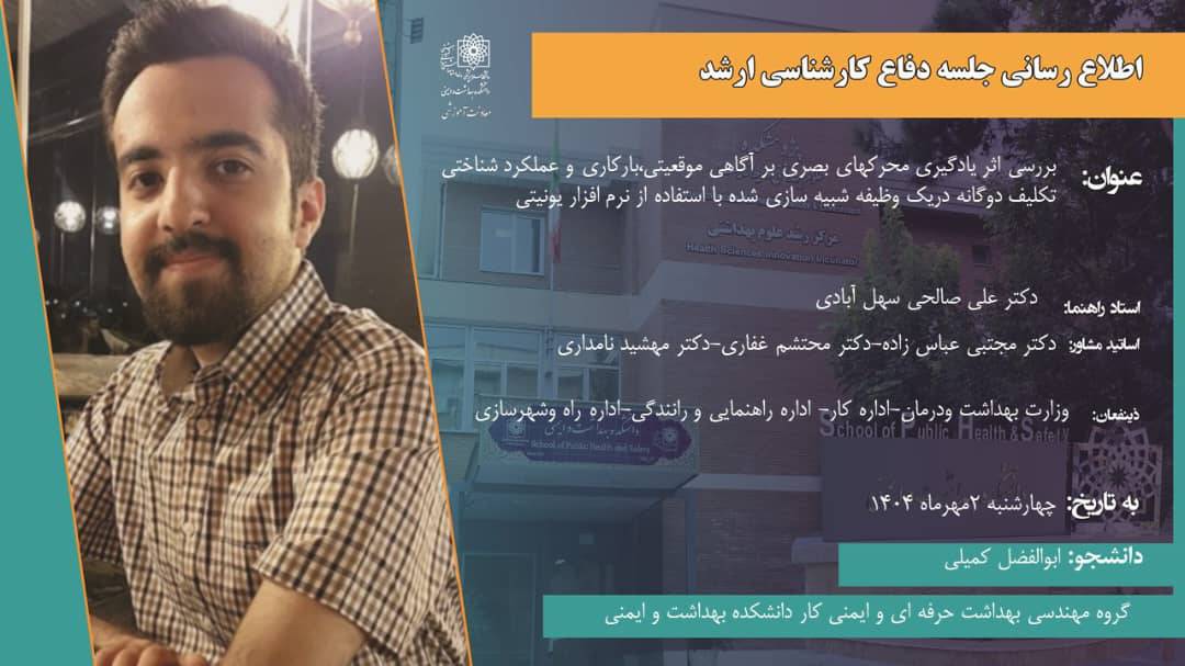 دفاع دانشجو ابوالفضل کمیلی - گروه مهندسی بهداشت حرفه ای و ایمنی کار