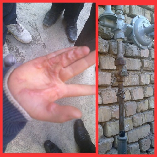 (برق گرفتگی کف دست یک نوجوان به علت برقدار بودن علمک گاز درب منزل).